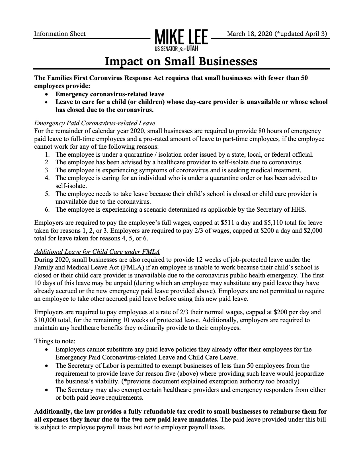 Permalink: https://www.lee.senate.gov/public/index.cfm/2020/3/impact-on-small-businesses-from-the-family-families-first-coronavirus-response-act