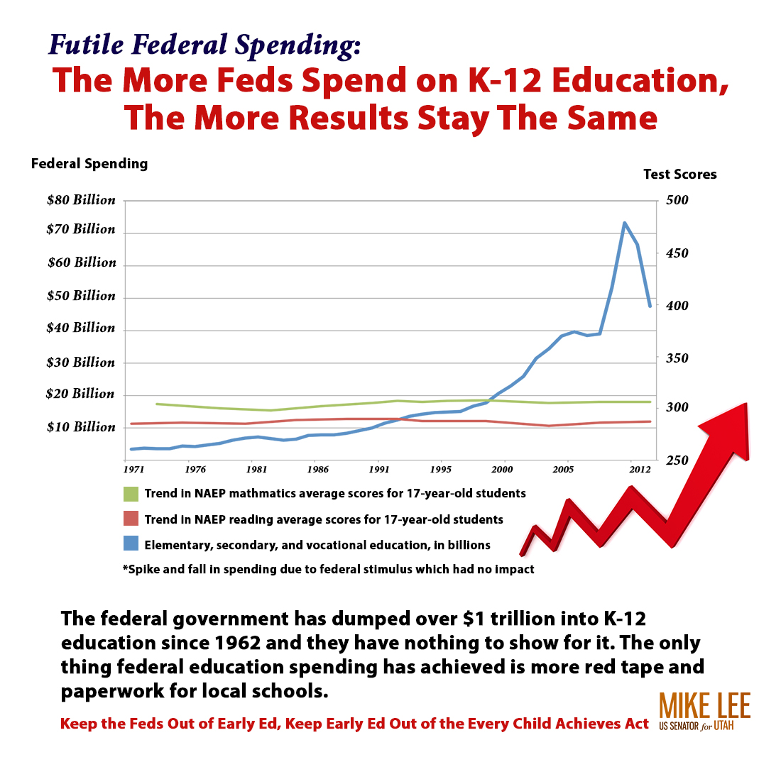This strategy includes rewriting the ESEA legislation to allow federal funds designated under Title I for elementary and secondary schools to be redirected toward preschool programs, and pushing an amendment that would establish $30 billion of new federal spending on pre-K programs over five years, on top of the $20 billion we already spend every year on 45 separate early-childhood education and care programs.