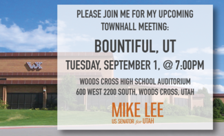 SALT LAKE CITY – Senator Lee announces two upcoming town hall events during the first week of September in Bountiful and Coalville, Utah. On Tuesday, September 1, Senator Lee will be holding a town hall visit at the Woods Cross High School Auditorium, and on Wednesday, September 2, Senator Lee will be stopping by the North Summit High School Auditorium for a town hall meeting in Coalville, Utah. Both town hall visits begin at 7:00pm.
