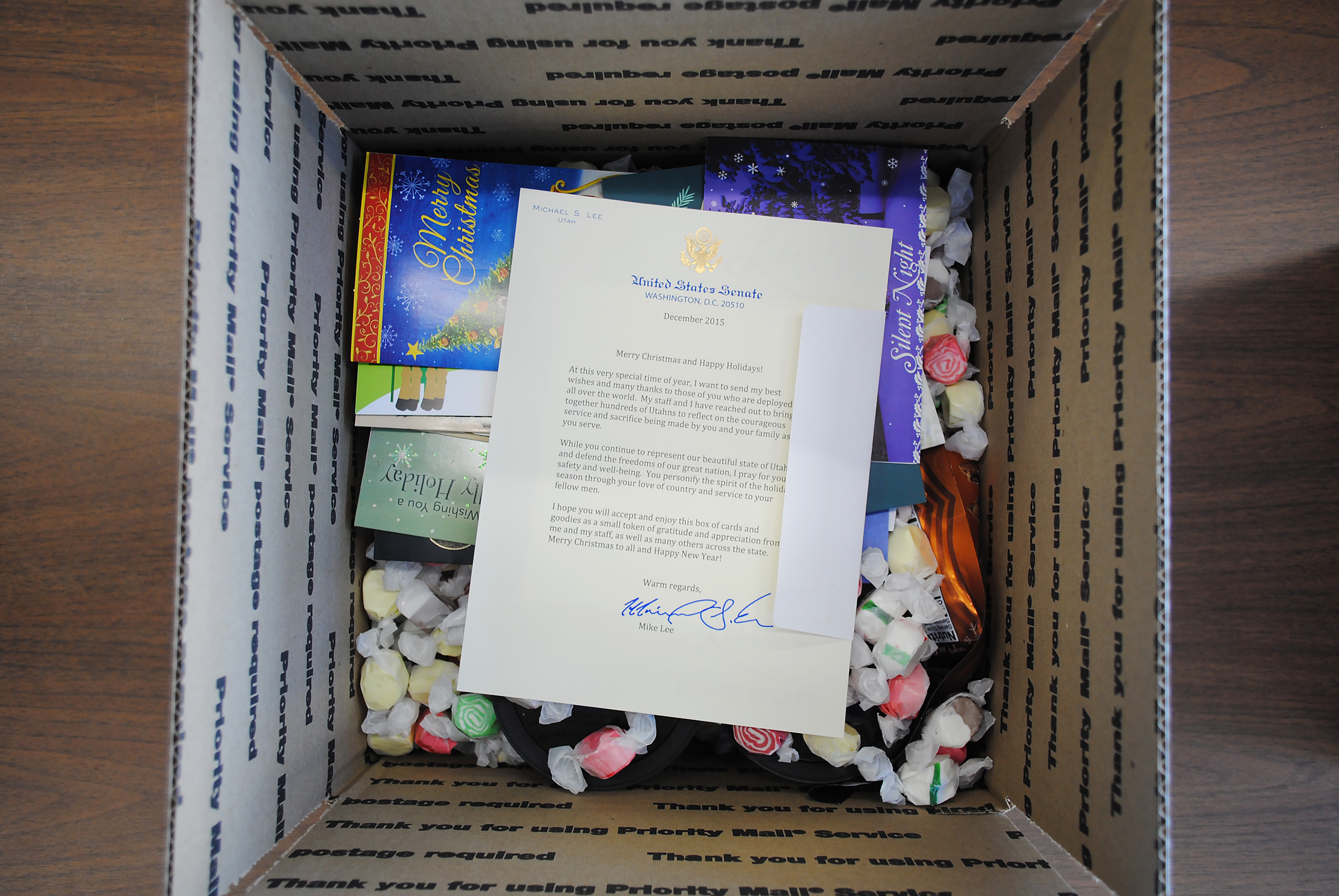 Over the last several weeks, I’ve been joined by many of you from across the state in extending a small token of gratitude to those Utahns serving our country. My staff began a project of providing holiday packages to our service men and women serving abroad. Reaching out to as many groups as possible, we hoped to be able to gather enough materials to reach a few dozen Utah heroes.