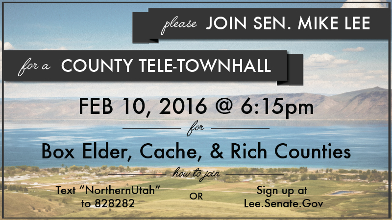 As part of Senator Lee’s plan to host interactive events with every county in Utah, Senator Lee is holding a live, interactive telephone event with the residents of Cache, Rich, and Box Elder counties. This event will be held on Wednesday, February 10, from 6:15 – 6:45 p.m. MT. Senator Lee looks forward to learning more about the specific issues affecting those who live in northern Utah. Residents of Cache, Rich, and Box Elder counties are encouraged to sign up for of this event by texting "NorthernUtah" to 828282, or by clicking the following link.