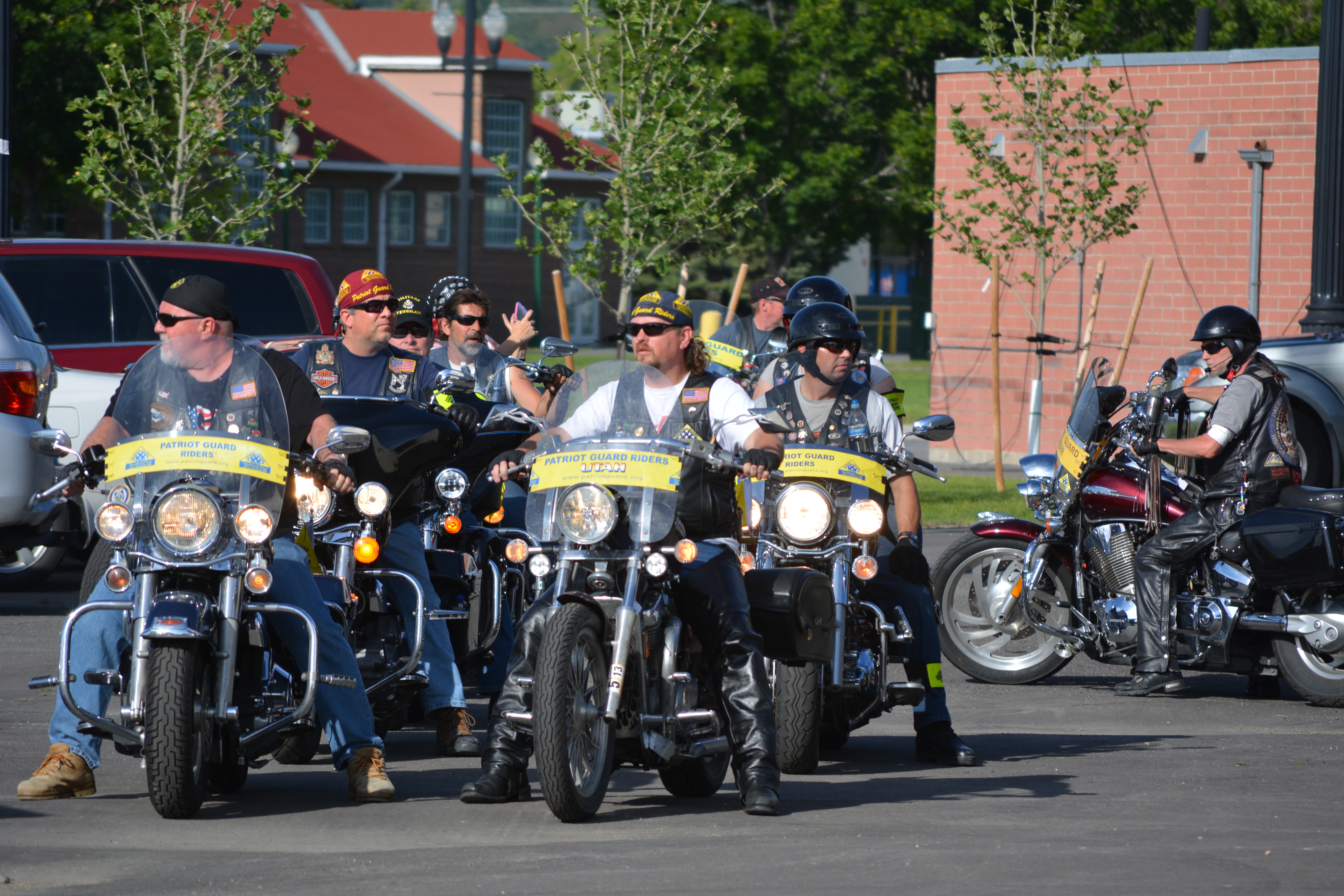 The Utah Patriot Guard escorting the Honor Flight to the airport